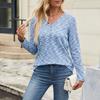 Herbst Oberteile Langarm T-Shirt Lässig Knöpfe V-Ausschnitt Pullover Damenbekleidung