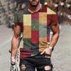 Gespleißtes Herren-T-Shirt, Retro, kurzärmelig, T-Shirts 2024, neue Herrenbekleidung, bedruckte T-Shirts mit Karomuster, übergroße europäische Oberteile