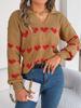 Design: Lässiger Damen-Strickpullover zum Valentinstag, langärmliger Strickpullover mit V-Ausschnitt und Herzmuster, sehr kombinierbar.