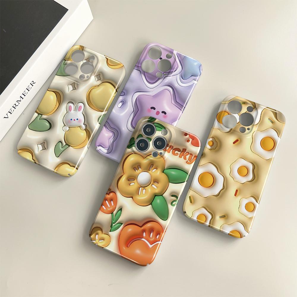 For iPhone 16 Samsung S23 A23 A52 A33 A73 A53 Huawei Xiaomi Redmi OPPO Vivo Stereoscopic Style Flowers Design Full Camera Protection Hard Phone Case