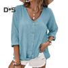 Trendige Frühlings- und Herbsthemden für Damen mit einfarbigen Farben, V-Ausschnitt, Knöpfen und langen Ärmeln.