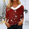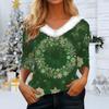 3/4-Ärmel-Shirts für Damen, weihnachtlich bedruckte Grafik-T-Shirts, Blusen, lässig, Übergröße, Basic-Oberteile mit Knopfleiste, Pullover