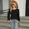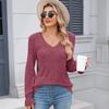 Damenmode Gebürstetes Hemd Einfarbig Lässig V-Ausschnitt Spitze Langarm Basic Oberteil