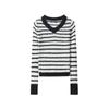 Damen Elegantes Streifendesign Eng anliegendes und figurschmeichelndes vielseitiges Strickoberteil Pullover Langärmliger Pullover