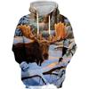Stilvoller Kapuzenpullover für Herren mit Hirsch-/Elch-Aufdruck, bequem, 100 % Polyester, für den Winter und Herbst, Streetwear
