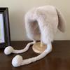 Damenmütze, Pelzmütze, weibliche Wintermütze, süße Plüschmodelle, Hasenohren, großer Kopfumfang, verdickte warme Strickwolle, Thunderbolt-Mütze