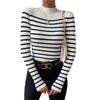 Gestreiftes Muster Mock Neck Slim Pullover, Stilvoller Langarm Rippstrick Pullover für Herbst & Winter, Damenbekleidung