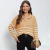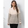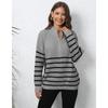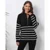 Damen Herbst/Winter Strick Streifen Patchwork Halbhoher Hals Reißverschluss Locker Gewebter Pullover