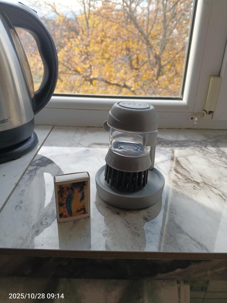 Multifunktionale drückende Reinigungsbürste, 2-in-1-Seifenspender-Handflächenbürste zum Reinigen von Pfannen, Schüsseln, Küchenscheuerbürsten, Küchenutensilien