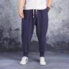 Herren Haremshose aus Baumwolle und Leinen mit elastischer Taille, einfarbig, Streetwear, Jogger, Baggy, tiefer Schritt, männliche Freizeitmode