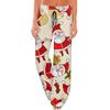 Bequeme Pyjamahose für Damen mit weihnachtlichem Aufdruck und weitem Bein und Kordelzug