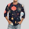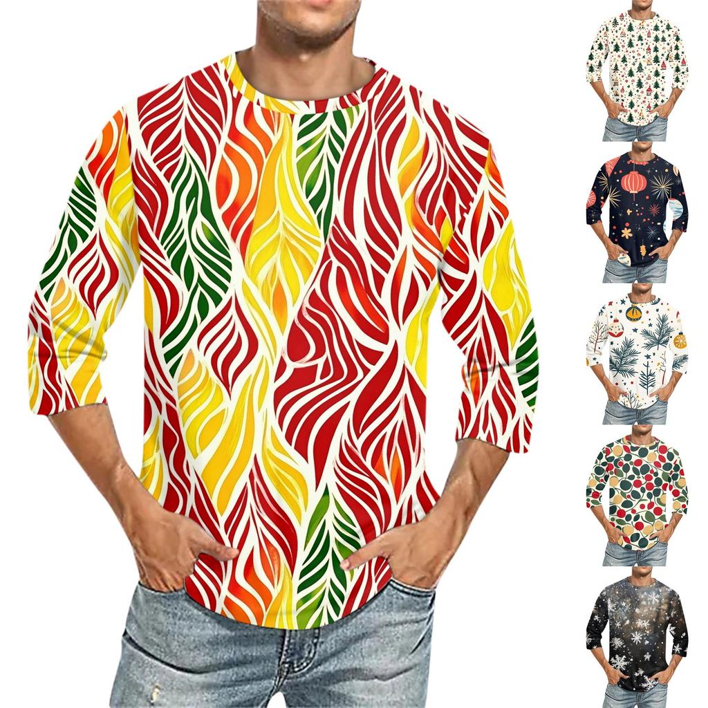 Herren-T-Shirt mit Weihnachtsdruck, Rundhalsausschnitt und Dreiviertelärmeln