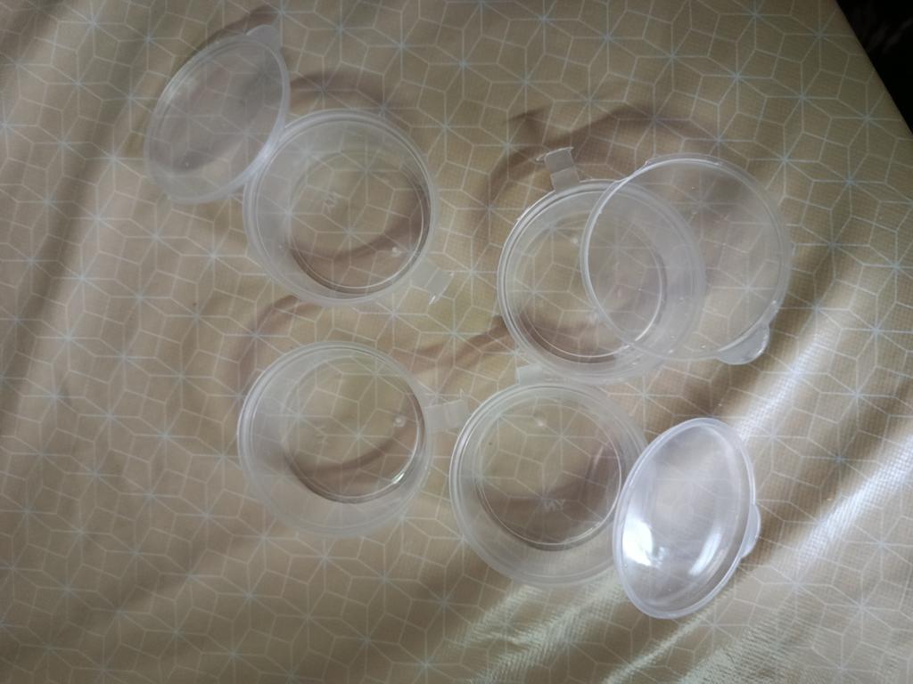 Kleine Behälter mit Deckeln habe ich für Tomatenmark bestellt. Wenn ich ein Glas Tomatenmark öffne, fülle ich es in Portionsförmchen ab und lege es in den Gefrierschrank. Sehr praktisch.