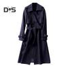 Damen Windjacke Umlegekragen Lockerer Mantel in reiner Farbe Zweireihig Lange Ärmel Gürteldekor Mantel Mittellang mit Taschen Winddicht Lady