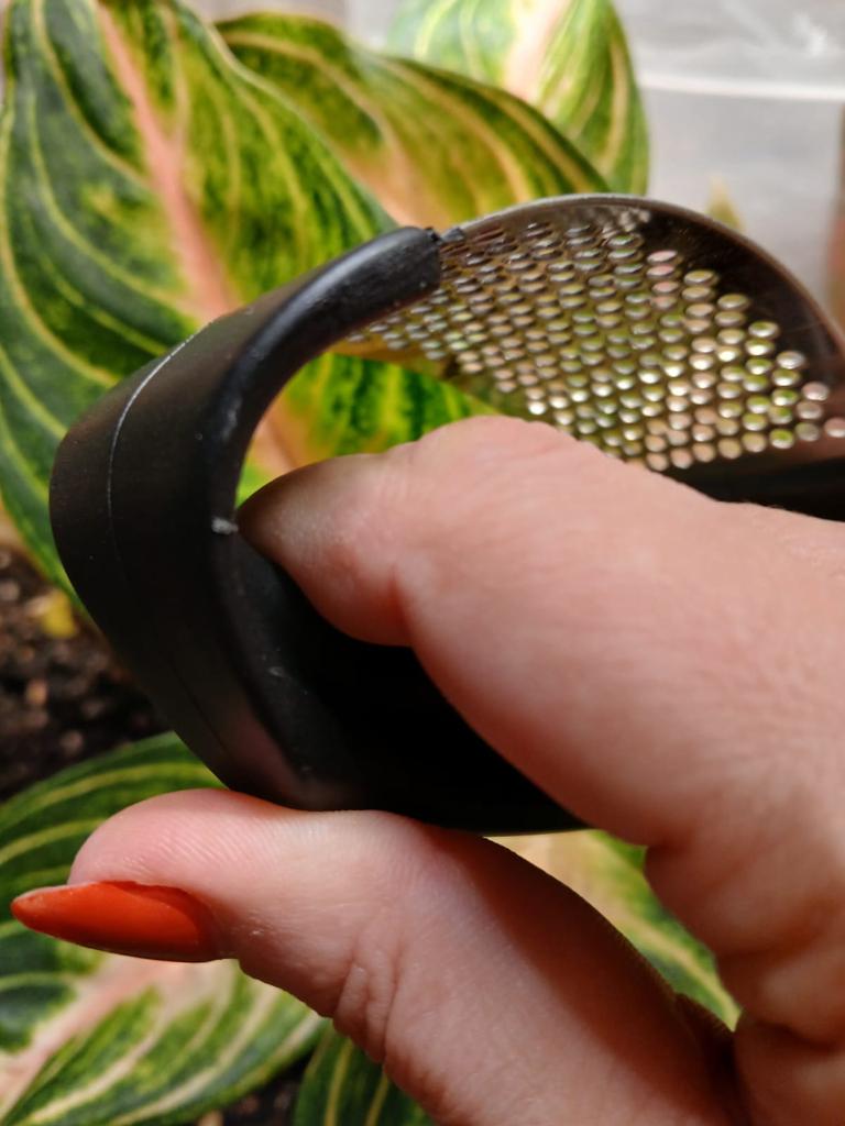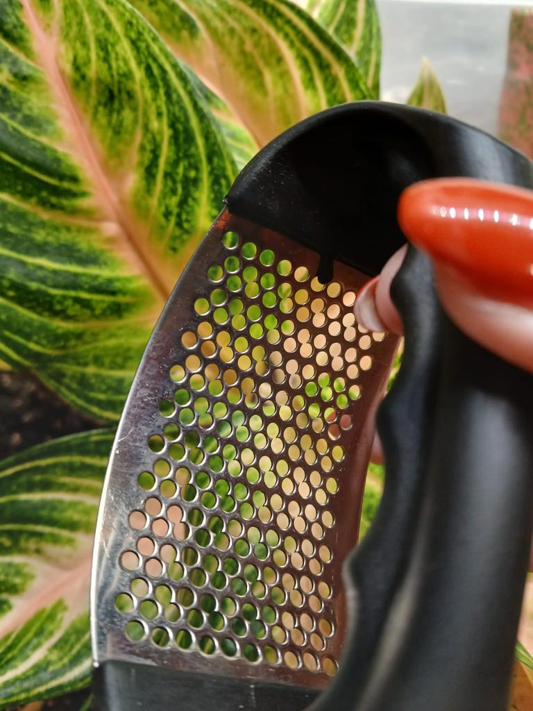 KNOBLAUCHPRESSE AUS EDELSTAHL Anständige Qualität👍 Sehr pflegeleicht 👇 Es lässt sich sehr schnell auswaschen, es bleibt nichts hängen und Sie müssen keine Zeit mit dem Heraussuchen von Rückständen verschwenden. Aber mir persönlich gefiel diese Methode, Knoblauch mit dieser Presse zu pressen, nicht.. Ich empfand den Griff als unbequem; man muss mit beiden Händen auf die Presse drücken, damit das Fruchtfleisch durchbricht (ich musste die Kamera beiseite legen und den Knoblauch mit beiden Händen zerdrücken 😚🤭) Oder Sie benötigen männliche Stärke, um schnell Ergebnisse zu erzielen. Es ist besser, kleinere Knoblauchzehen zu wählen; bei großen ist es besser, sie in zwei Hälften zu schneiden.