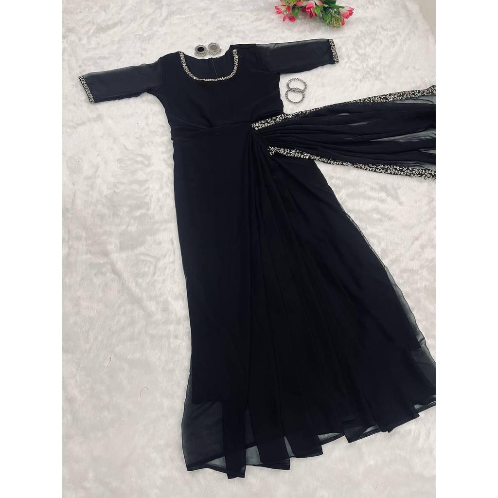 Wir präsentieren ein neues trendiges Sarikleid mit bestickter Spitze