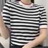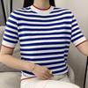 IHUASU Colour Blocking Striped Cotton Short-sleeved T-shirt Women's Summer Half-sleeve Knitted Bottoming Half-sleeve
