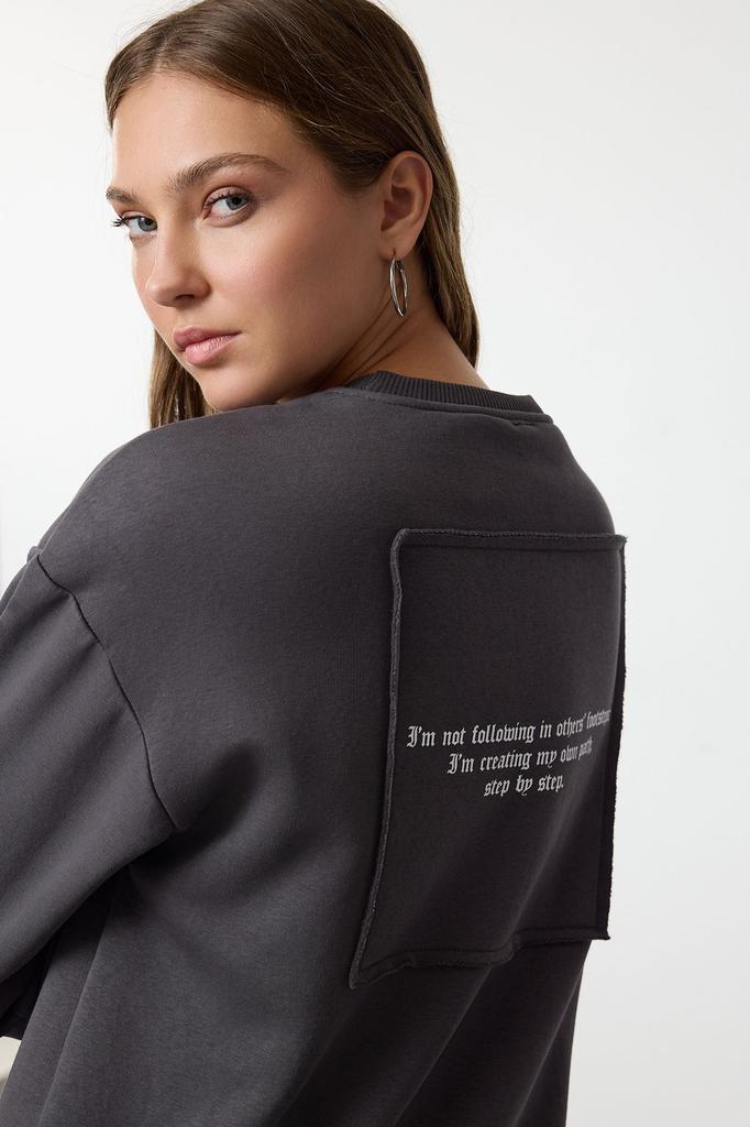 Women's Fashionable Stylish Sweatshirt Anthracite Regular Normal Fit Front and Back Printed Thick Polar Knitted Sweatshirt