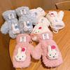 Niedliche kleine Bären Fleecehandschuhe Damen Winter Warm Plüsch Pelzig Vollfingerhandschuhe Winddicht Hängende Hals Fäustlinge Für Mädchen