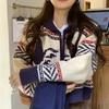 DAFIFY Damenmode Lässig Herbst Winter Geometrischer Druck Langarm O-Ausschnitt Pullover
