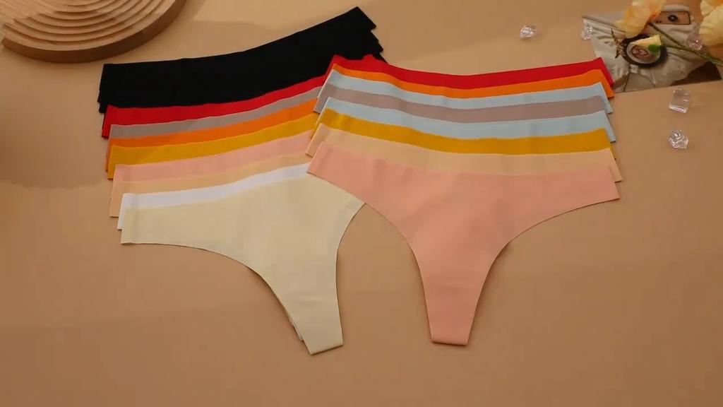 4PCS Ice Silk Unterwäsche Damen Nahtlose Tangas Sexy Low Waist V-Taille G-String Weibliche Atmungsaktive Feste Höschen Sport Unterhose