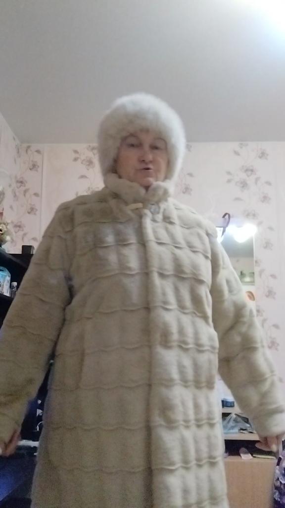 Guter Pelzmantel, eher ein Halbpelzmantel. Leicht ohne Futter. Anstelle von 2xl habe ich 3xl genommen. Um darunter eine Steppjacke aus Kaninchenfell zu tragen.