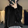 Frühling und Herbst Damen-Sweatshirt mit Kapuze, Strick-Sweatshirt, Damen mit Kapuze, lockerer und dünner, lässiger Zimtnadel-Pullover-Mantel
