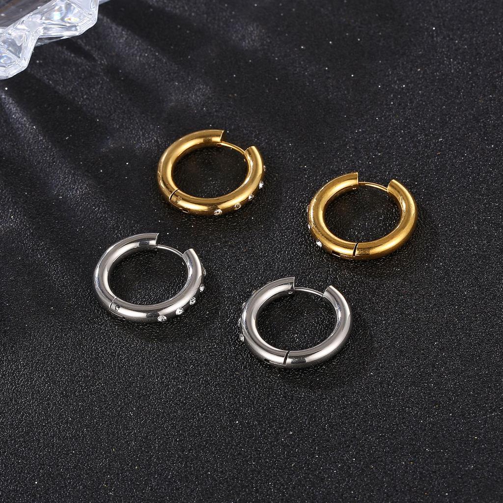 Mode Edelstahl Runde Ohr Schnalle frauen Klebrige Diamant 18K Trend Zarte Kleine Ohrringe Titan Stahl Stud Ohrringe