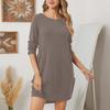 Damen-Frühlingskleider, lässiges Puff-Langarm-T-Shirt-Kleid mit Taschen