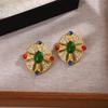 Chic and Elegant Elliptical Ear Studs with Sparkling Zirconia Stones in Retro Style