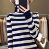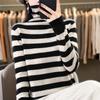 DAFIFY Damenmode, lässig, Herbst/Winter, Streifenmuster, langärmelig, hoher Kragen