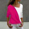 Damenmode Casual Slant Neck Unregelmäßiger Farbblock Splicing Print Langarm T-Shirt Top