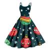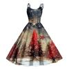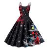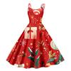 Damen Weihnachtsgeschenke Weihnachtsmütze bedruckt Sexy schulterfreies Punk-Vintage-Kleid
