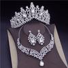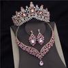Wunderschöne rosa Kristall-Diademe Brautschmuck-Sets für Frauen Mode Krone Ohrringe koreanische Hochzeit Halskette Dubai Schmuck-Sets