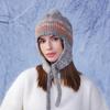 Winter Ohrenschützmütze Damen Kältefest Warme Fliegermützen Farbig Gestreifte Gestrickte Wollmütze