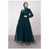 Drapiertes Tüll-Abendkleid mit Gürtel und Steindetail auf der Vorderseite