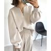 Guter Stoff Winter Hoodies Japanische Einfarbige Lockere Pullover V-Ausschnitt Laterne Langarm Sweatshirt für Frauen