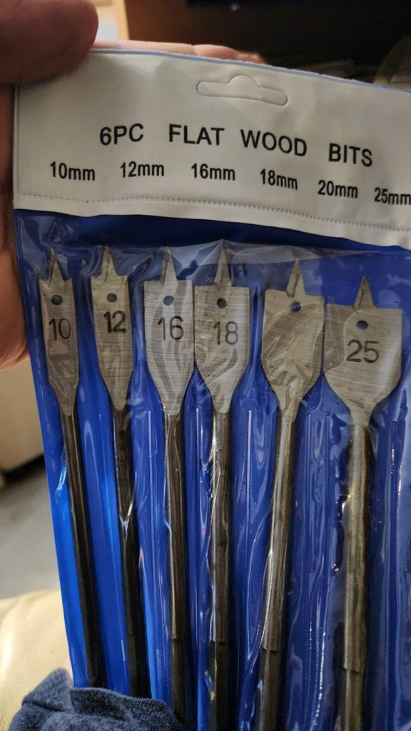 Ein wunderbares Set von Flachbohrern für Holz. Ich habe es zum Bohren von Sperrholz für Schalungen genommen. Mit Sechskantschaft.