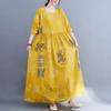 Literarische Damen Blumen Maxi Lange Kleider Übergröße Locker Druck Rundhals Langarmkleid
