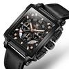 Herrenuhren Quadratische Quarzuhr für Herren Wasserdichtes Lederarmband Chronograph Armbanduhr Leuchtend Relogio Masculino