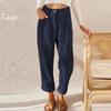 Damen Hohe Taille Casual Hosen Einfarbig Cord Lose Gerade Bein Hosen Frauen