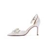 Mode Mode Schleife Strass Damen Weiß Premium High Heel Schuhe Spitze Zehen Stiletto Satin Damen Premium All-Match Sandalen