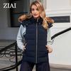 ziai Neue Damen Daunenwesten Ärmellos Pelzkragen Kapuze Pufferjacke Mädchen Winddicht Gesteppter Parka Mantel Slim Damen Oberbekleidung ZR-L006