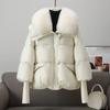 Winter Pelz Kragen Puffer Unten Parka Lose Unten Wärmer Verdicken Schnee Jacke Tasche Zipper Faux Pelz Oberbekleidung Weibliche