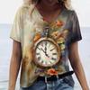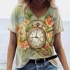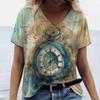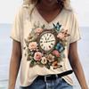 3D-Druck Damen T-Shirt Vintage Buchstabendruck Kurzarm Tägliches Wochenende Basic Mädchen V-Ausschnitt T-Shirt Weibliche Kleidung Übergroße Sommeroberteile