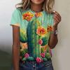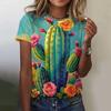 Sommer 3D-gedrucktes Cartoon Loose Edition T-Shirt Mode Kaktusmuster Top T-Shirt Rundhals Kurzarm Damenoberteil