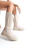 Moderne, stilvolle Mode-Stiefel für Damen, Kunstleder, hellbraun, matt, bestickter Reißverschluss, Western-Cowboystiefel