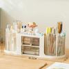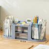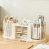 Doppelt drehbarer Schreibtisch-Organizer mit 3 Schubladen, 2 drehbaren Stifthaltern, 1 Aufbewahrungsbox oben, groß