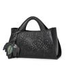 Aidrani Echtleder Damenhandtasche große Kapazität Blumenmuster Umhängetasche weiche Rindsledertasche schwarz