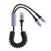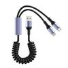 Erleben Sie den Komfort des gleichzeitigen Ladens mit unserem 2-in-1 Federladekabel mit Micro-USB- und Typ-C-Anschluss, perfekt zum Aufladen Ihrer Geräte unterwegs.
